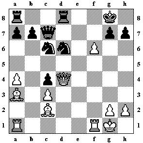 folgenden Begegnung: 11.De2 b6 12.cxd5 exd5 13.c4 dxc4 14.Lxc4 cxd4 15.Tac1 Lg4