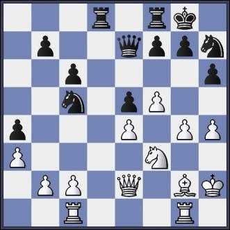 14.Sd2 Sc5 15.Kh2 a5 16.De2 a4 17.a3 h6 18.g4 Sh7 19.Td1 Lg5! Einleitung