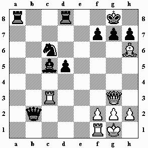 Schwarz) 22...axb5 23.axb5 Sxc6 24.bxc6 Da7+ 25.Kh1 Sf6 Schwarz steht