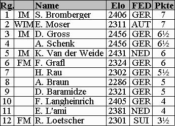 und einzige Niederlage, und zwar (mit Weiß) gegen IM David Gross. Doch bereits