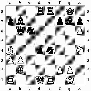 13.Tc1 dxc4 14.bxc4 Tc7 15.Sb3 Td7 16.De2 a5 mit Ausgleich, Indjic-Rashkovsky,