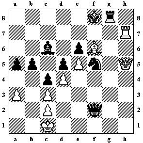 Lh6 10.Td1 Tc2+ 11.Kf3 Txc1 12.Taxc1 Lxc1 13.h4! Lxb2 14.Lb5 und Schwarz muss