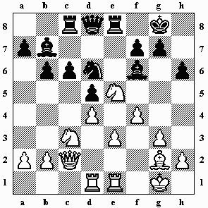 Td8 15.Lb1 Sa6 16.Sd4 g6 17.Sce2 Weiß steht ein bisschen besser, I.