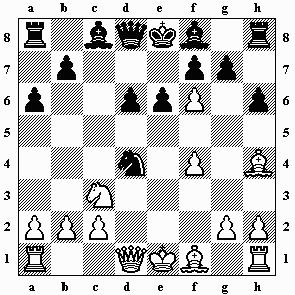 Die Hauptvariante ist: 10.Dxd4 dxe5 11.Dxd8+ Kxd8 12.fxe5 g5 13.0–0–0+