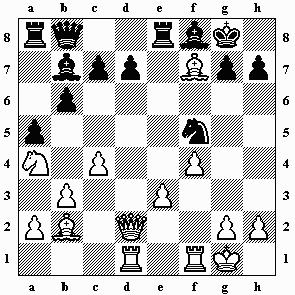 12...g5 13.fxg5 Se4 14.Dh5 Sxg5 15.Lg3 Sb4 16.Le2 Tc8 17.Sh3 Auf 17.Sf3