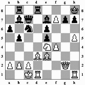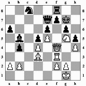21...Le7 22.Lb4 Tg7 23.Sxg6 hxg6 24.Lxe7 Schwarz gab auf 1–0