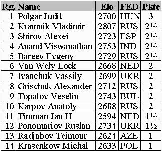 mit Kramnik vor und fehlt ebenfalls. Der Lokalmatador Jeroen Piket beendete