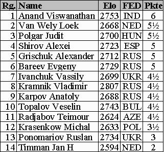 und Vassily Ivanchuk (mit 9 Remis!). Kurz an der Spitze hielt sich der