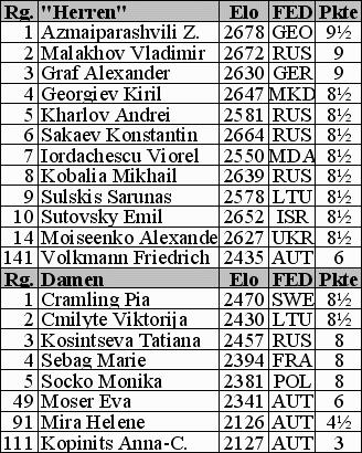 2520) gegen 13 Großmeister! Eva Moser, die beste Österreicherin, belegte nach