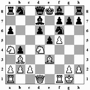7.0-0 b5 8.Sxc6 Dxc6 Zu diesem Zeitpunkt galt diese