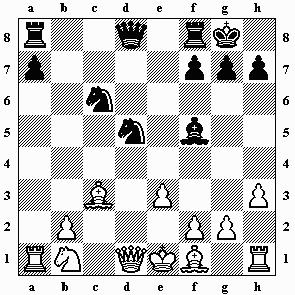 Sbd7 14.0–0 Te8 15.Sb5 Lxd2 16.Dxd2 Se5 17.Td1 Sxd5 18.S1c3 Sxc3 19.Dxc3 mit