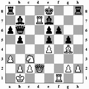 15.h6 g6 16.g4 Sc8 17.De3 Sb6 18.Lg5 f6 19.Lh4 Dd7 und Weiß steht ein bisschen