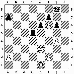 1...Te5+ 2.Kd2 Txe1! Das Bauernendspiel ist für Schwarz gewonnen