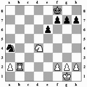 7.Sxg7 Kf6 8.Se8+ Kxg6 9.Sd6 b6 10.Sc4 Kf5 11.Kd5 wäre die Lage von Schwarz