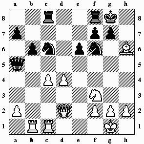 Da6 14.Db3 b6 15.c4 Sc6 16.Tfc1 Tac8 17.Dd3 h6 18.Dd2 Da5 19.Lxh6!?