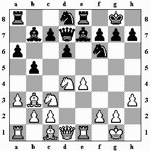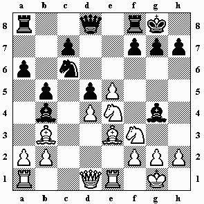 7.Lb3 d6 8.c3 0–0 9.d4 Lg4 10.Le3 exd4 11.cxd4 d5 12.e5 Se4 13.Sc3 Lb4 Diese