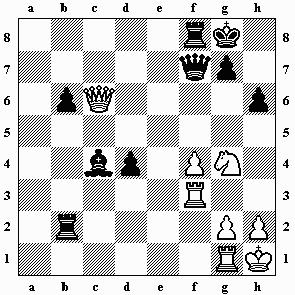 2...gxh6 Vorteil für Schwarz verspricht: 2...Kh7! 3.Dc1 gxh6 4.Dxb2 Lxf3 5.gxf3 Dxf4 6.Tg3 Tg8.