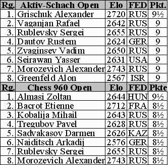 Grischuk erfolgreich seinen vorjährigen Titel verteidigen. Beim Chess 960 Open
