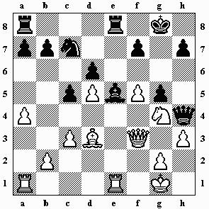 Txb7 14.Lxb7 Lxe3+ 15.Kg2 Ld2 16.g5 Le1 17.Kh3 Ld2 18.Kg4 Das Endspiel ist