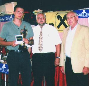 Siegerfoto: GM Pavasovic mit dem Präsidenten des SV ASVÖ Raika St.Veit Winfried Horn und KSV Vize-Präsident Dr. Helmut Sommer, Foto 2: FM Guido Kaspret, bestplacierter Österreicher