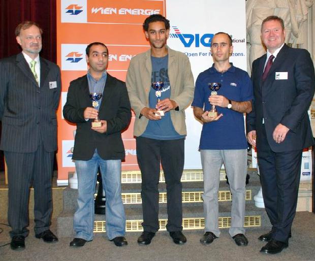 v.l.n.r.: Turnierdirektor Johann Pöcksteiner, 2.Platz David Arutinian, Sieger Samy Shoker, 3. Platz Namig Guliyev, WSV-Präsident Christian Hursky