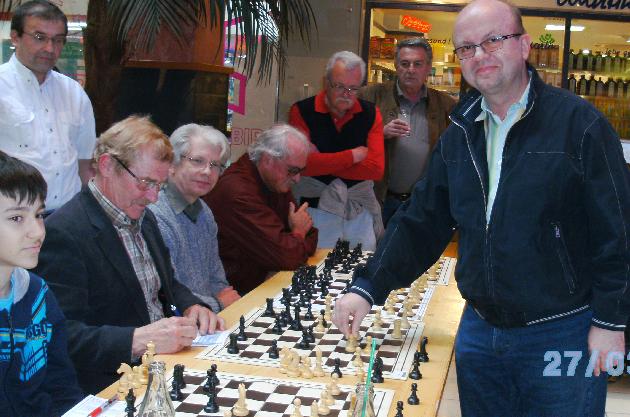 Schachbegeisterte an, um sich mit dem Meister zu messen. Alle Altersstufen,